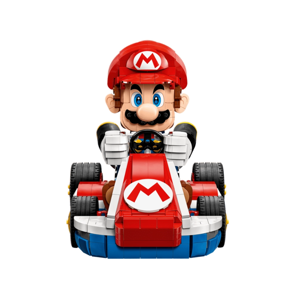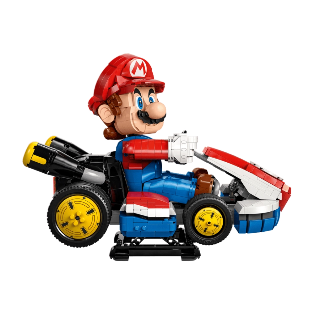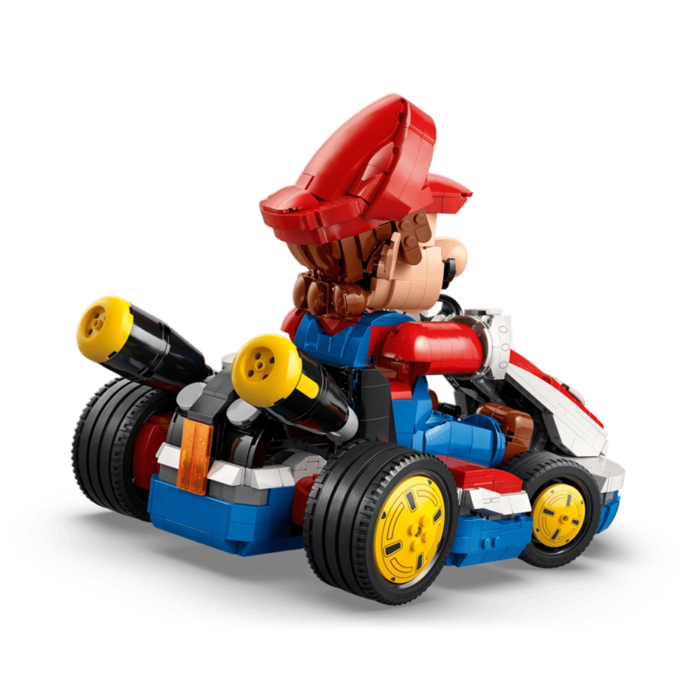 Vehículo de Carreras: Bloques específicos para ensamblar el kart con su diseño aerodinámico y colores icónicos.