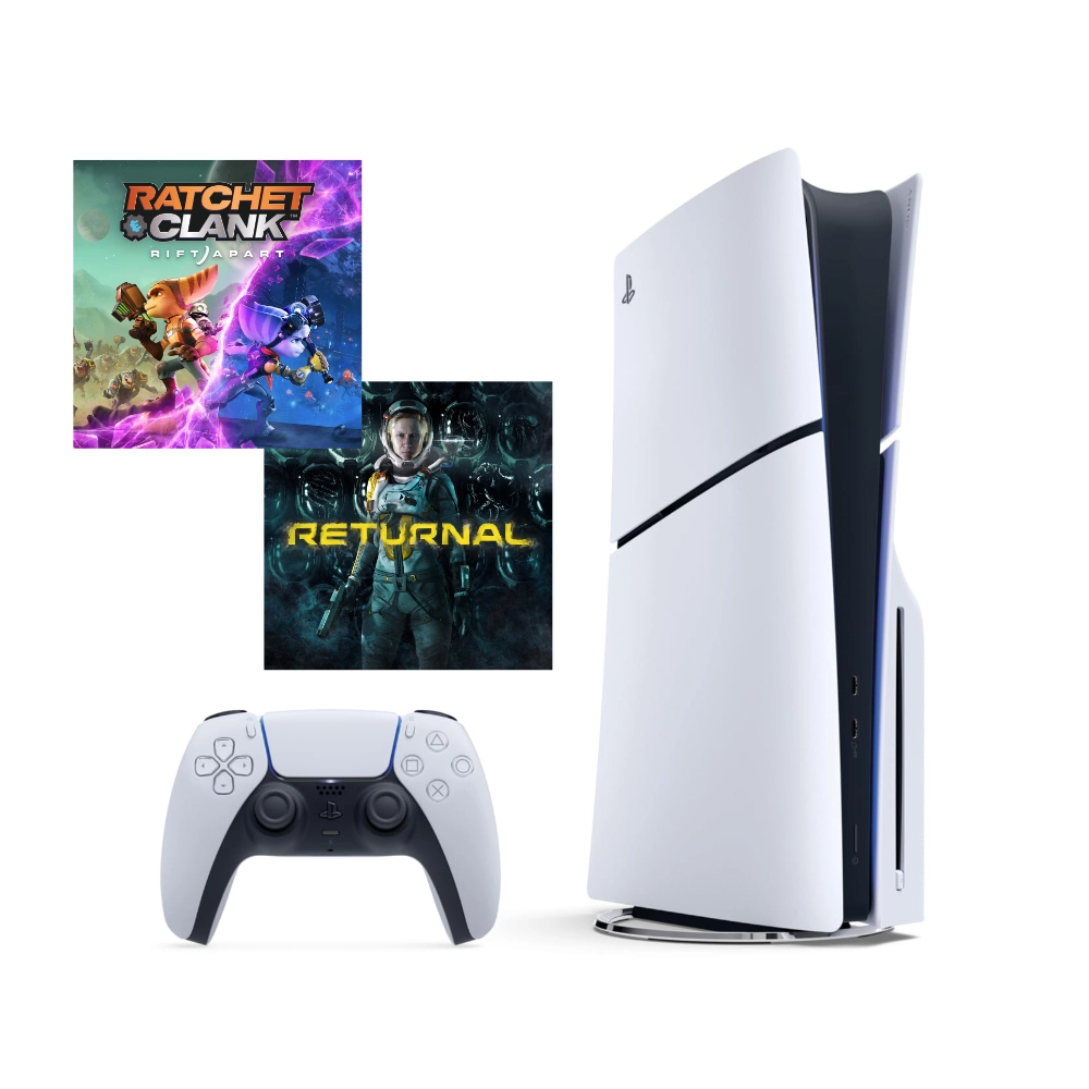 La consola playstation 5 slim con lector Ratchet & Clank - Returnal bundle renovó las expectativas del mundo virtual con esta nueva consola y su gran rendimiento. La consola incluye estos dos juegos de aventura exclusivos para. Cuenta con una interfaz de usuario más rápida y fácil de navegar que en anteriores modelos. Además, podrás jugar durante horas desafiando a millones de contrincantes alrededor del mundo que esperan nuevos retos.