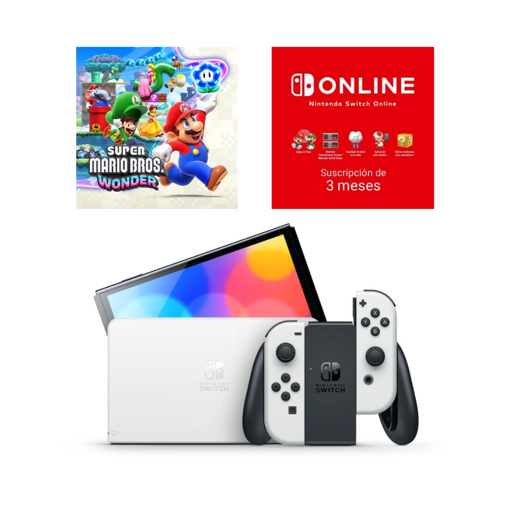Disfruta de la mejor experiencia de juego en cualquier lugar con la Nintendo Switch Modelo OLED de 7 pulgadas en color blanco. Este paquete exclusivo incluye una descarga digital del aclamado Super Mario Bros. Wonder, la nueva aventura de plataformas llena de sorpresas.