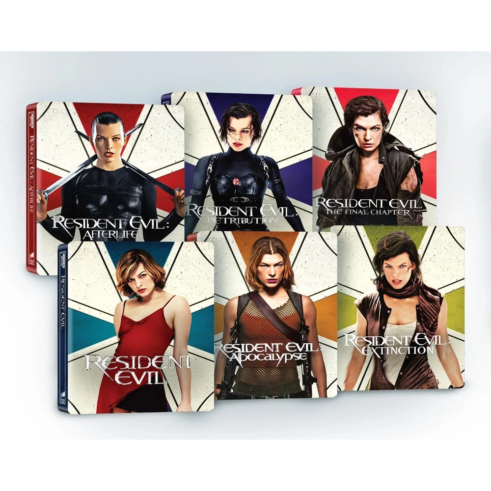 6 Steelbooks de metal: Cada película cuenta con su propio empaque metálico con arte único.