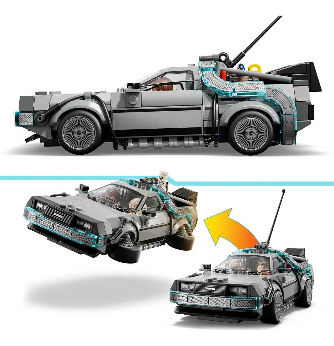 Minifiguras Coleccionables: Incluye a Marty McFly y al Doc Brown con sus atuendos clásicos de la película.